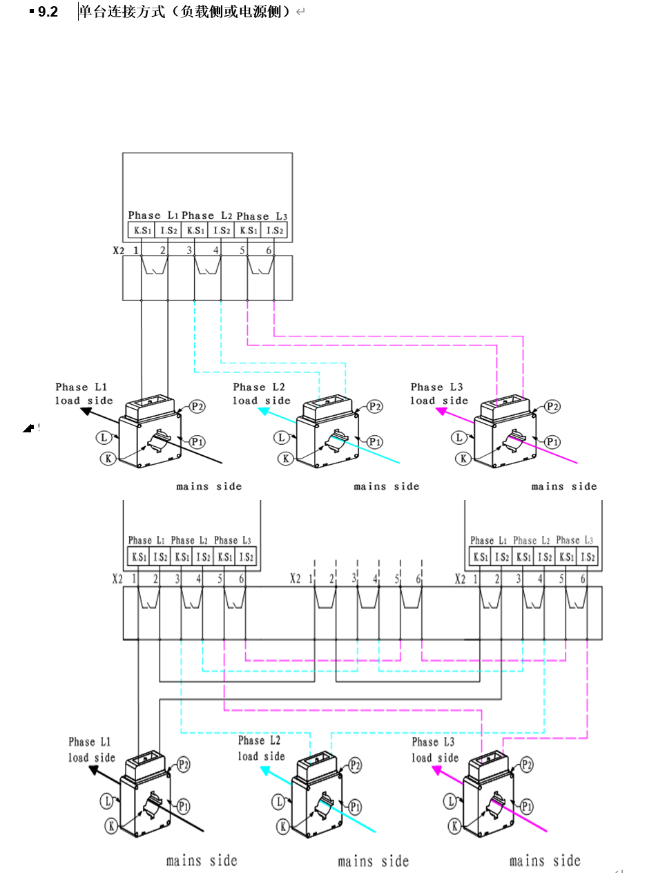 注意:當(dāng)多臺(tái)并聯(lián)時(shí),電流互感器必須安裝在濾波器的負(fù)載側(cè)。