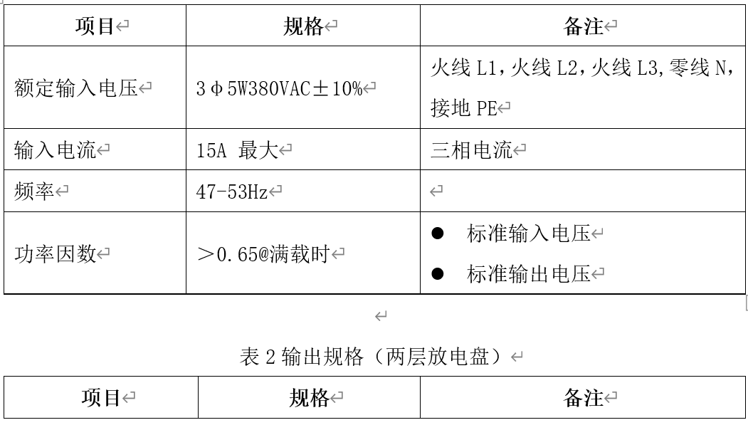 表1及表2表示系統(tǒng)的交流輸入及直流輸出規(guī)格.